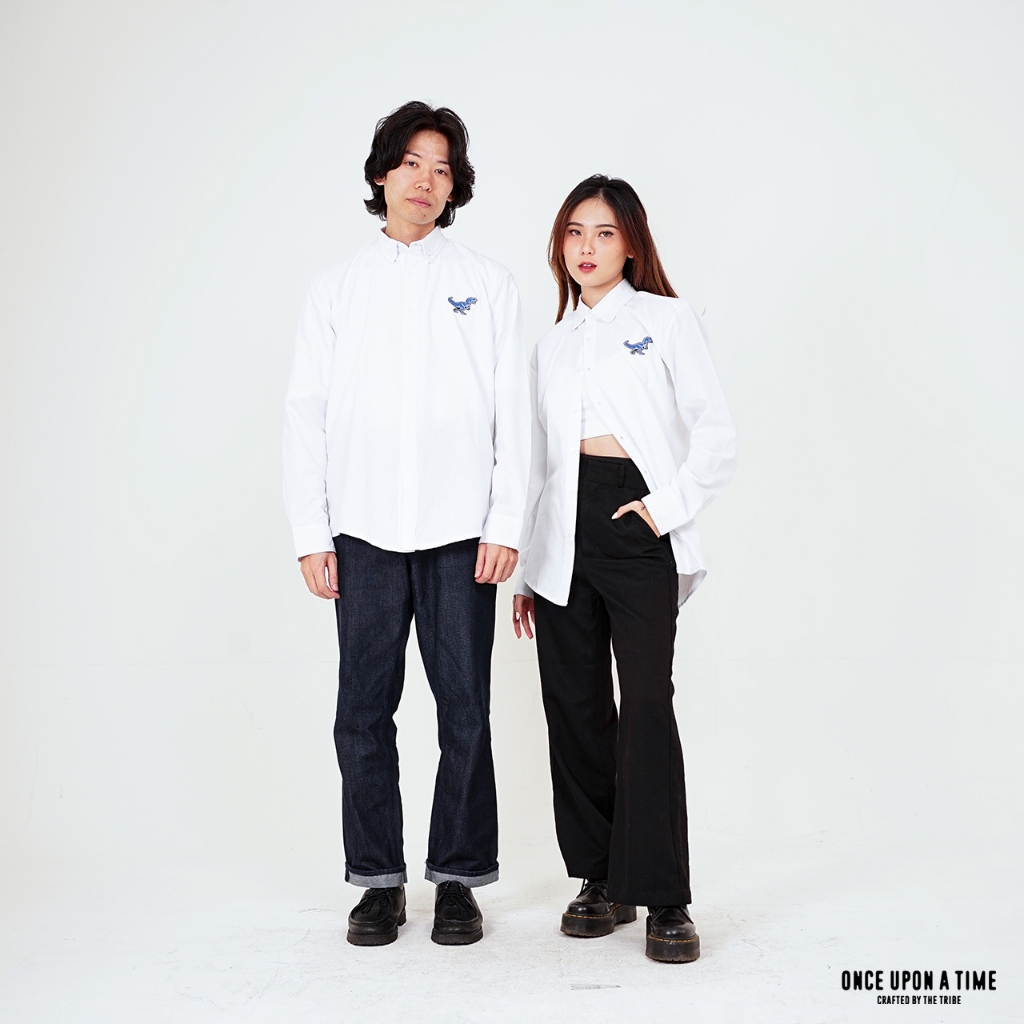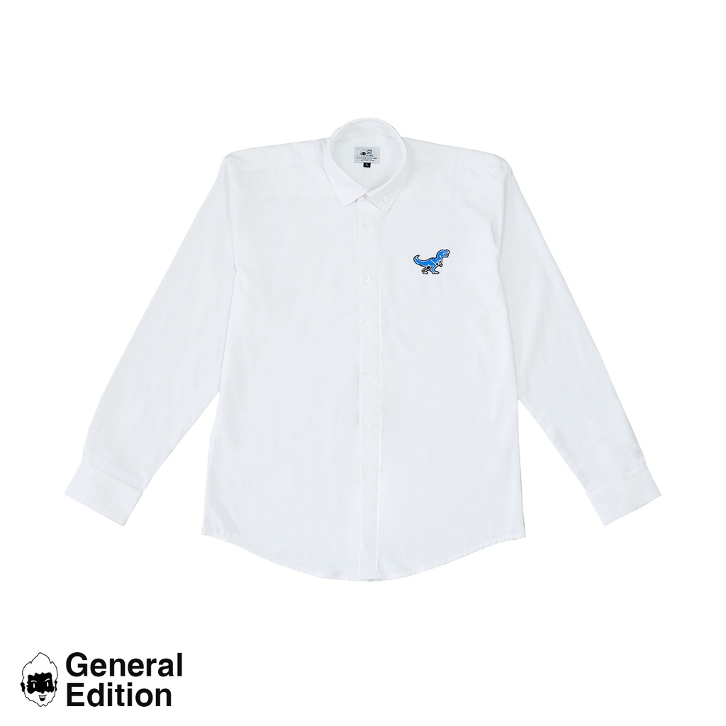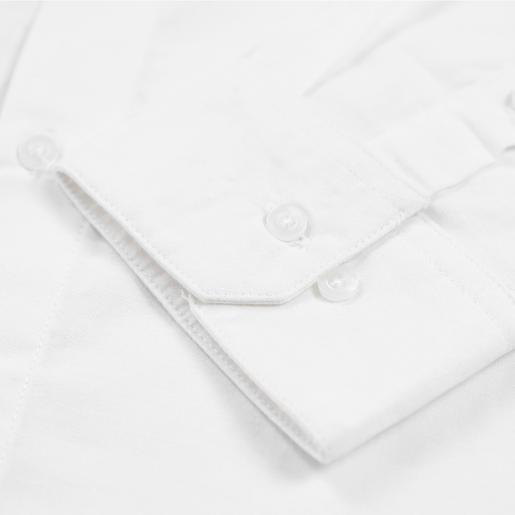 (GE) Rex - Baju Atasan Kemeja Hem Polos Pria Wanita Lengan Panjang Oxford Shirt Cowok Cewek Uni Warna Putih - White L