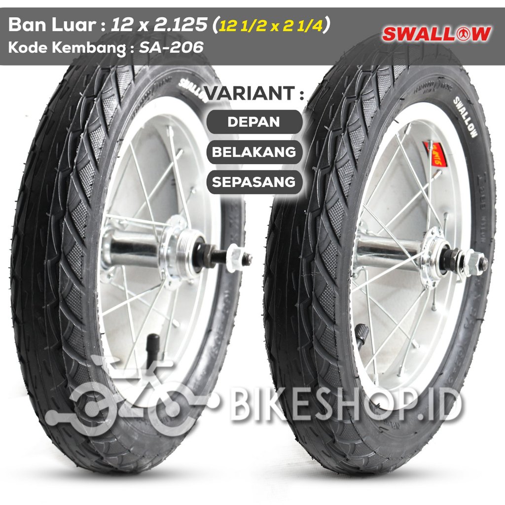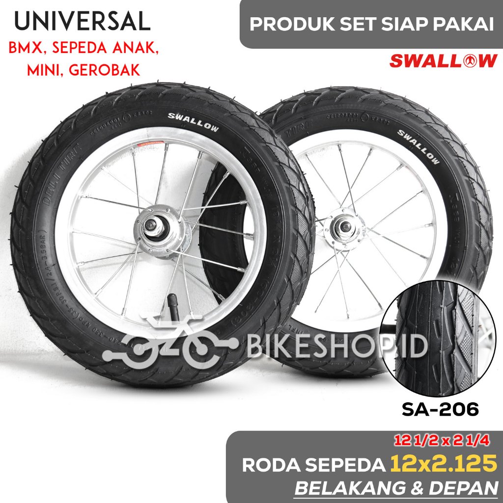 Roda Sepeda 12 x 2.125 SWALLOW Hitam Full Silver Siap Pakai Cocok Untuk Semua Sepeda Ank BMX Mini Gerobak Dan Lain-Lain