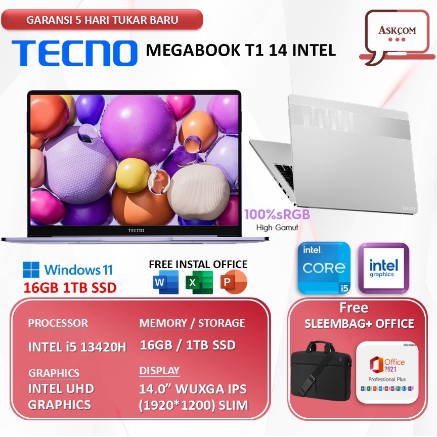 Laptop TECNO MEGABOOK T1 14 i5 13420H 16GB 1TB SSD 14.0WUXGA 100sRGB 75WH 1.39KG Windows11