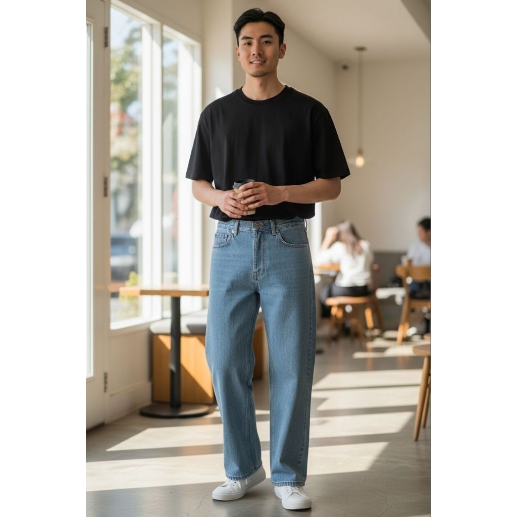 Celana Jeans Panjang Pria Koreanstyle Celana losefit Wisker Retro/Beggy Jeans Pria Gombrang