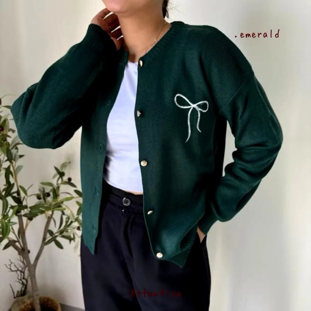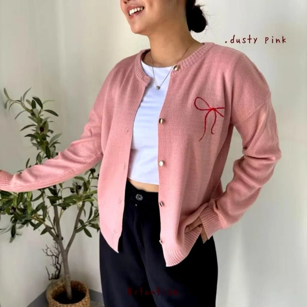 Cardigan Wanita Alia Rajut Pita Rajut Series Premium Cardigan Korean Style Motif Polos Lengan Panjang Best Seller Murah
