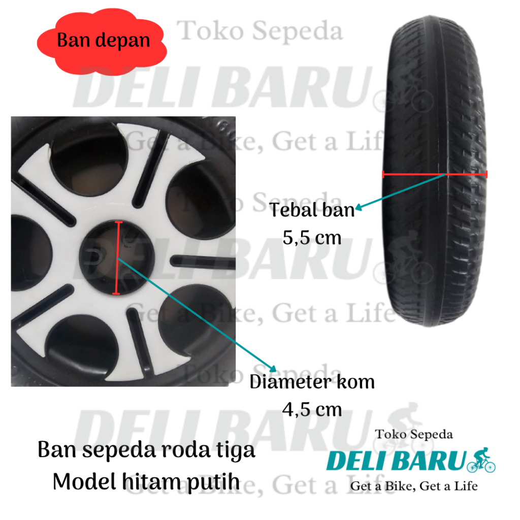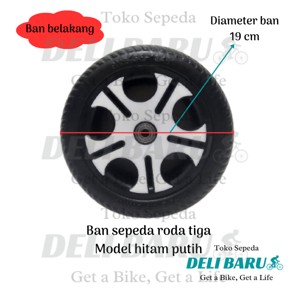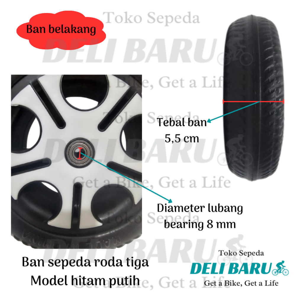 Delibaru Ban sepeda roda tiga depan 260 x 60 atau belakang 9 x 2 bearing 608zz motif hitam putih