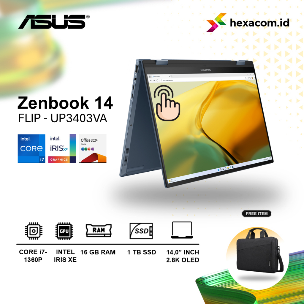 Laptop Asus Zenbook 14 Flip OLED UP3404VA i7-1360P RAM 16GB SSD 1TB 14.0" 2.8K