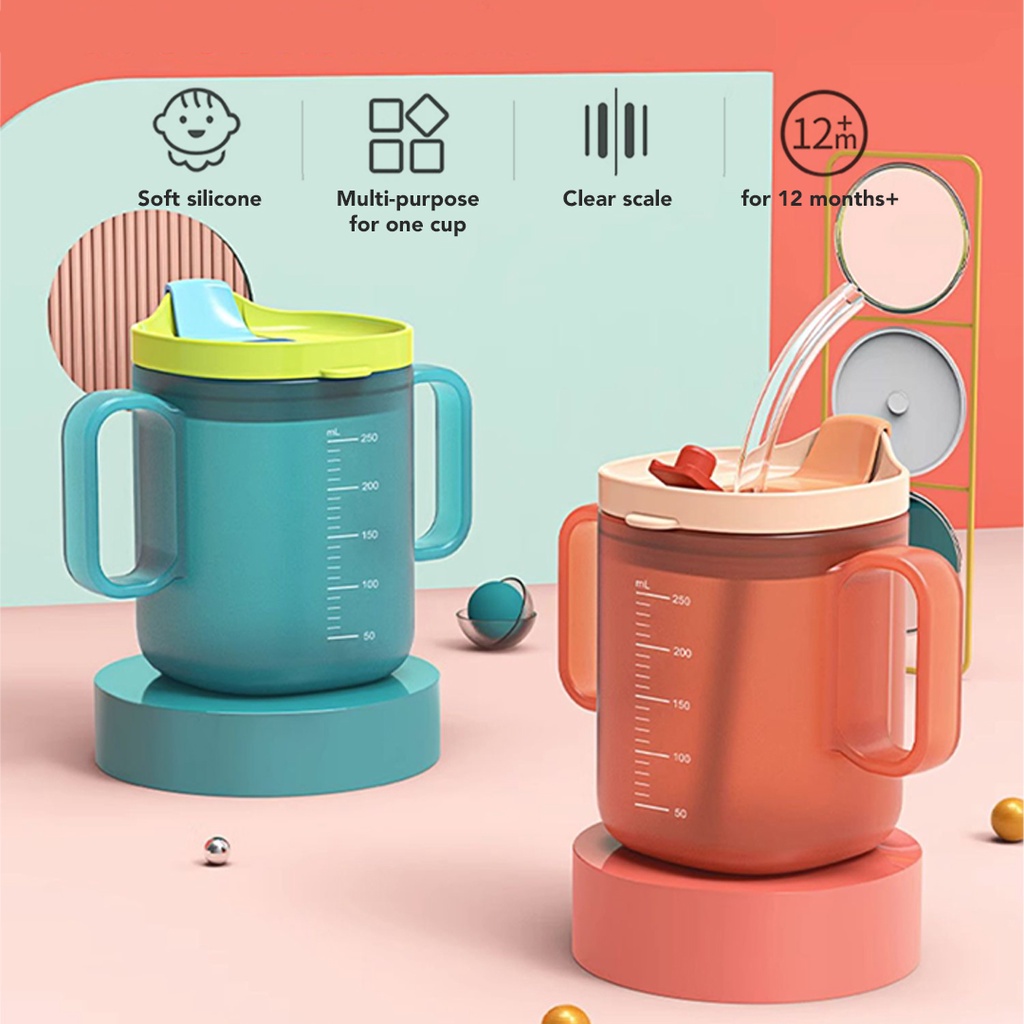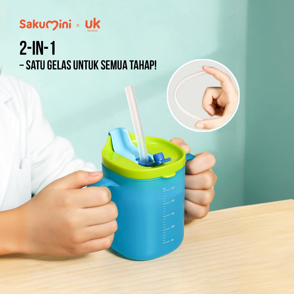 Sakumini 2in1 Training Duckbill Straw Cup Gelas Minum Sedotan Anak