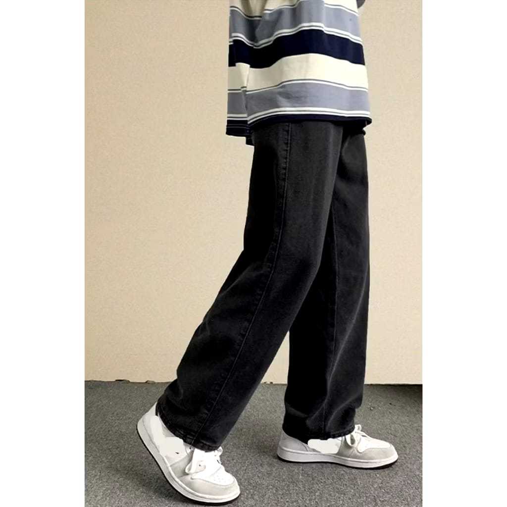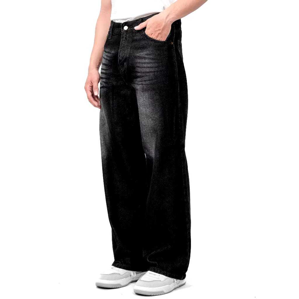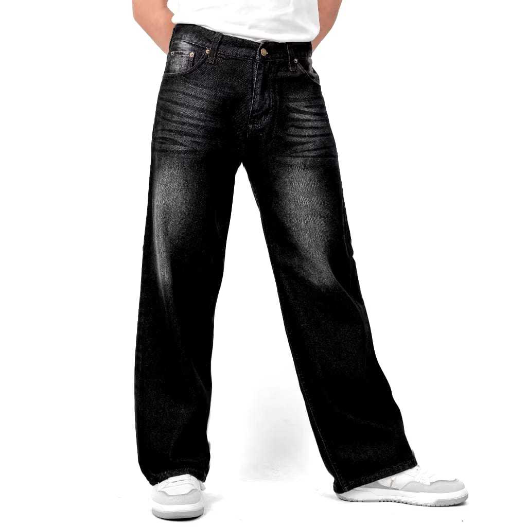 Celana GONDES Jeans Wisker Pria Unisex Wide Leg Gombrong Skena Black Wisker pria loose fit jumbo