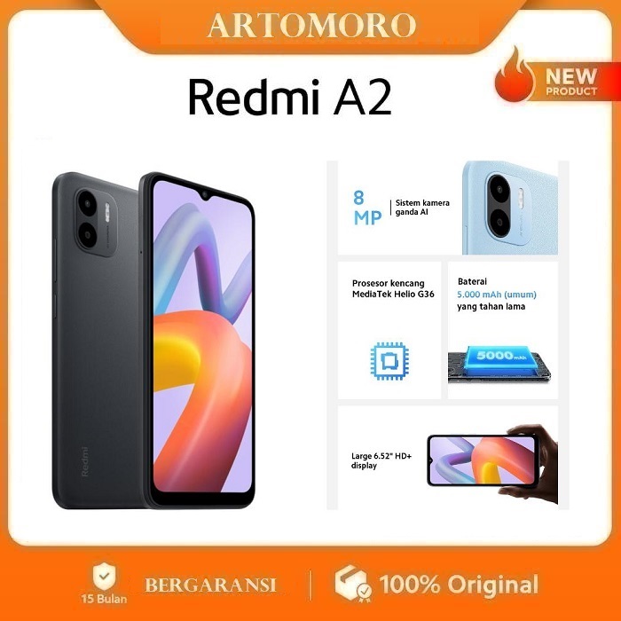 XIAOMI REDMI A2 RAM 3 ROM 32 64 pengisian 10W Layar LCD HD+ 6,52"