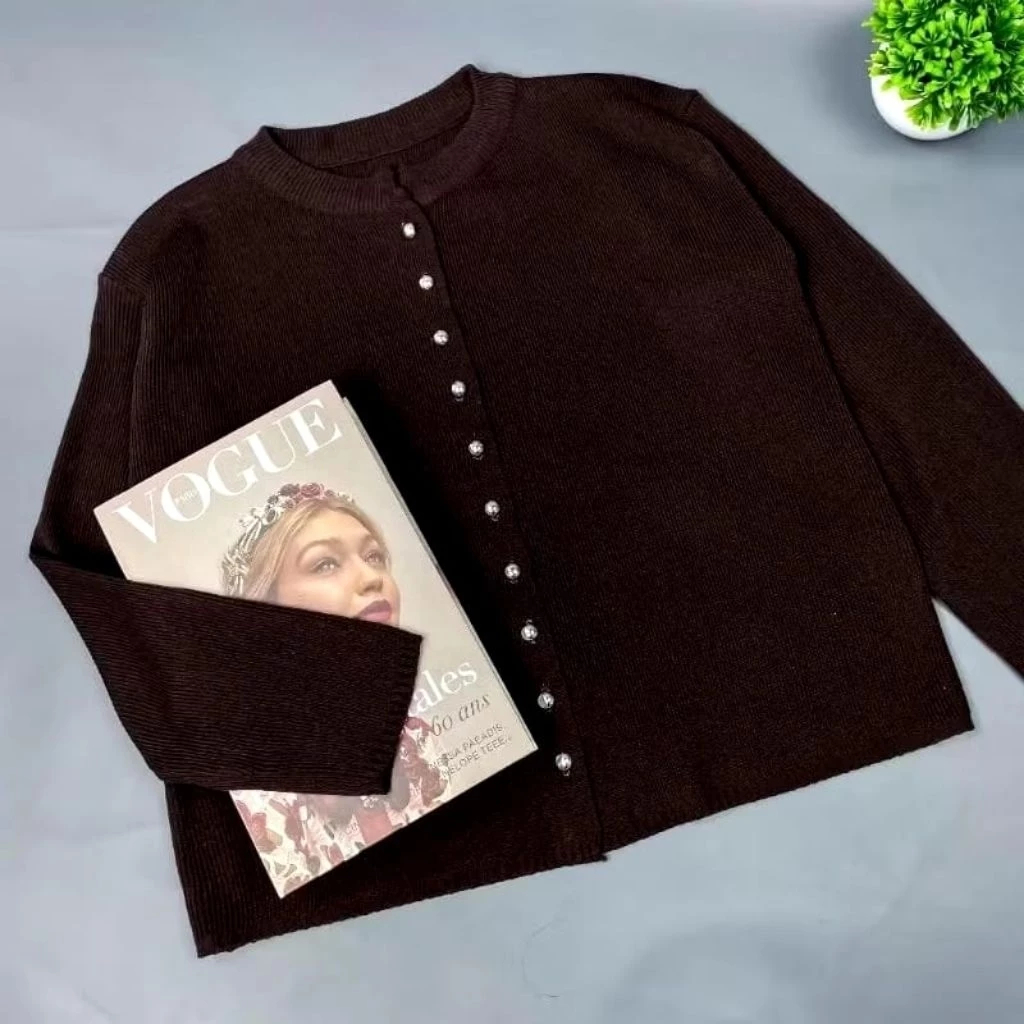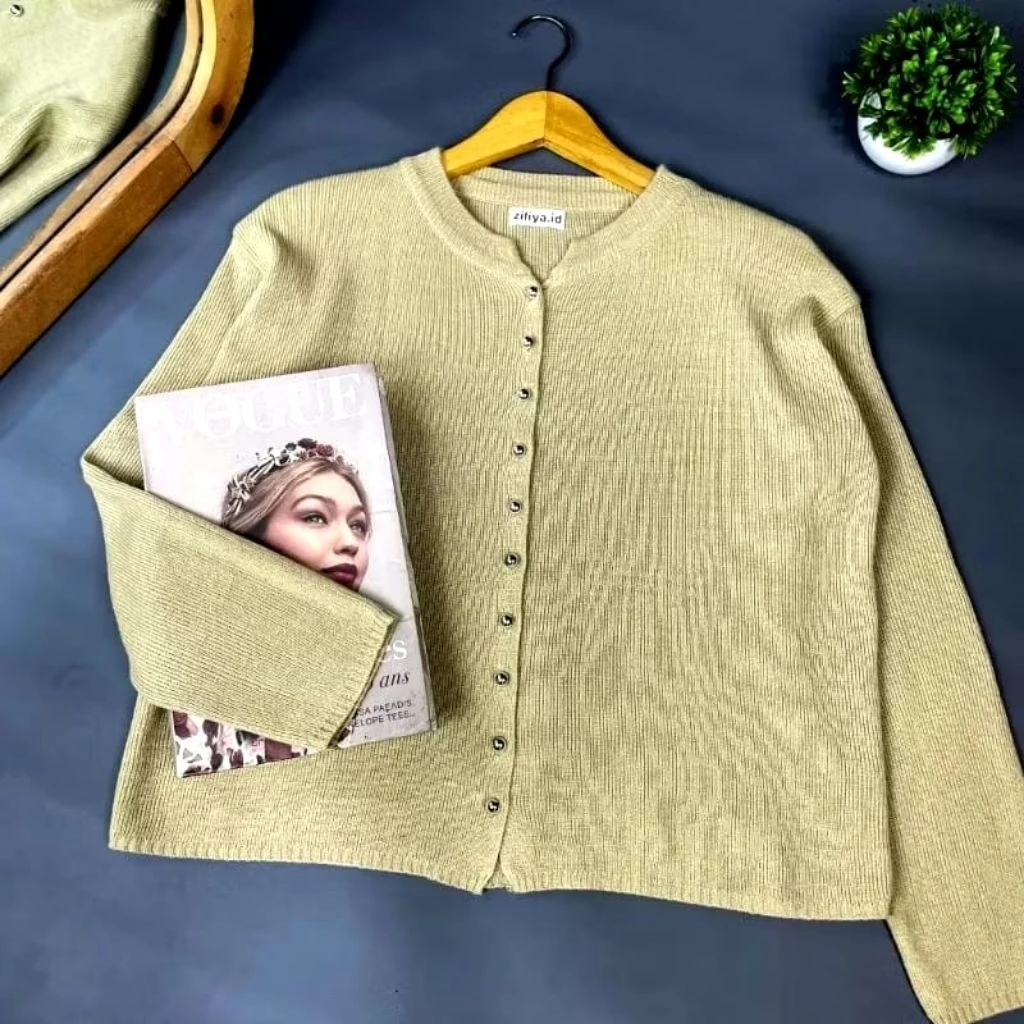 Cardigan Wanita Ros Rajut Kancing Series Premium Cardigan Korean Style Motif Polos Lengan Panjang Best Seller Murah