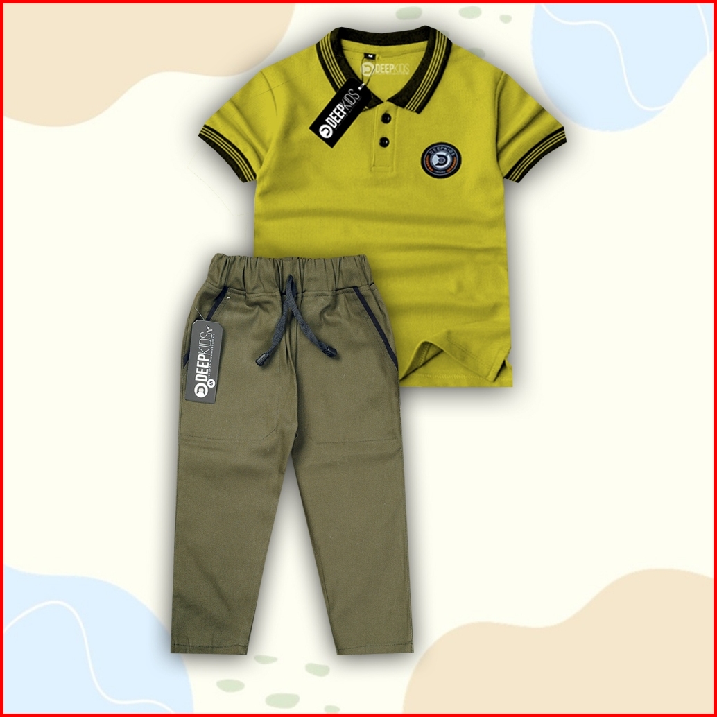 Setelan Anak Laki Laki Kaos Kerah Polo Celana Chinos Panjang Usia 1-12 Tahun Set Kkl Chinos Panjang