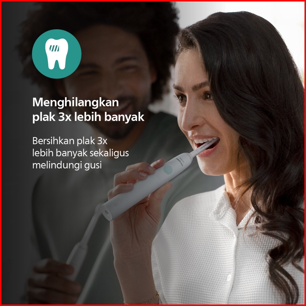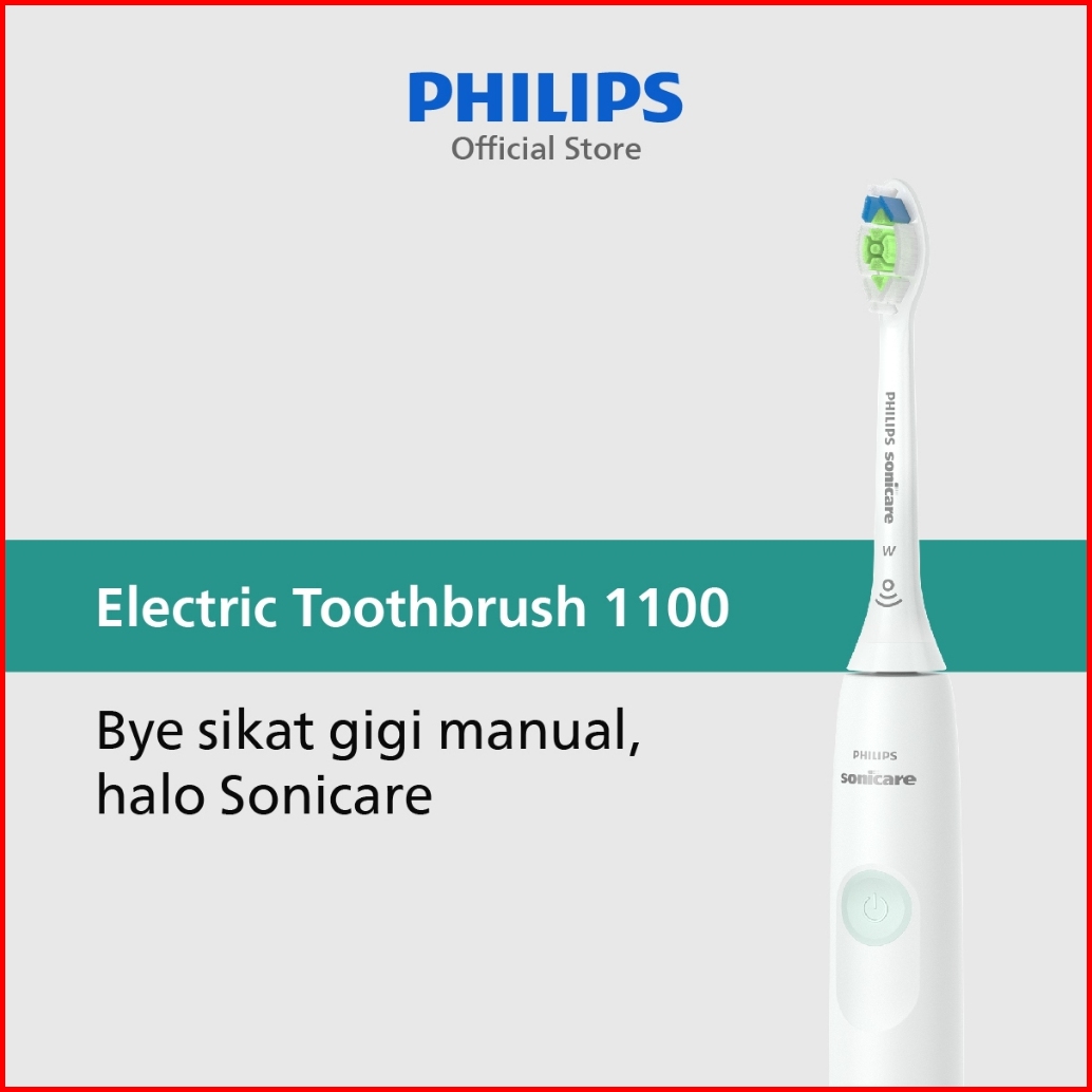 Philips Electric Toothbrush 1100 Sikat Gigi Electric Plak 3x Lebih Bersih Dari Sikat Gigi Manual Putih Hx3641 41