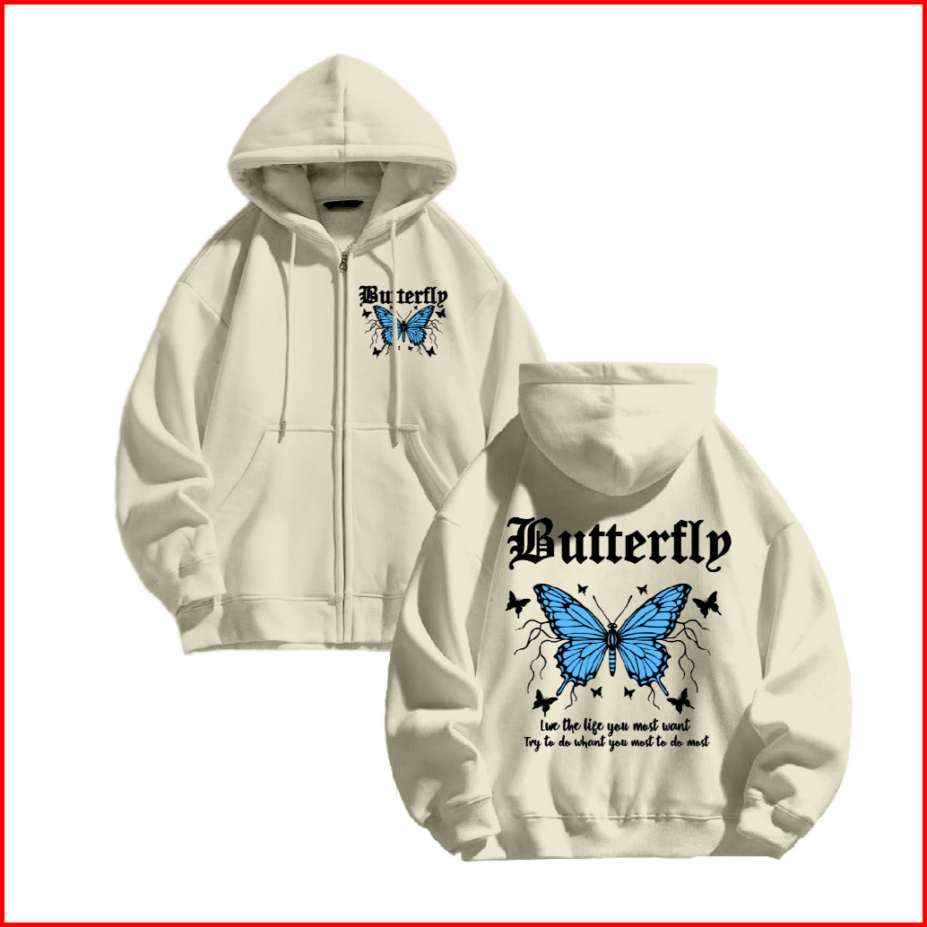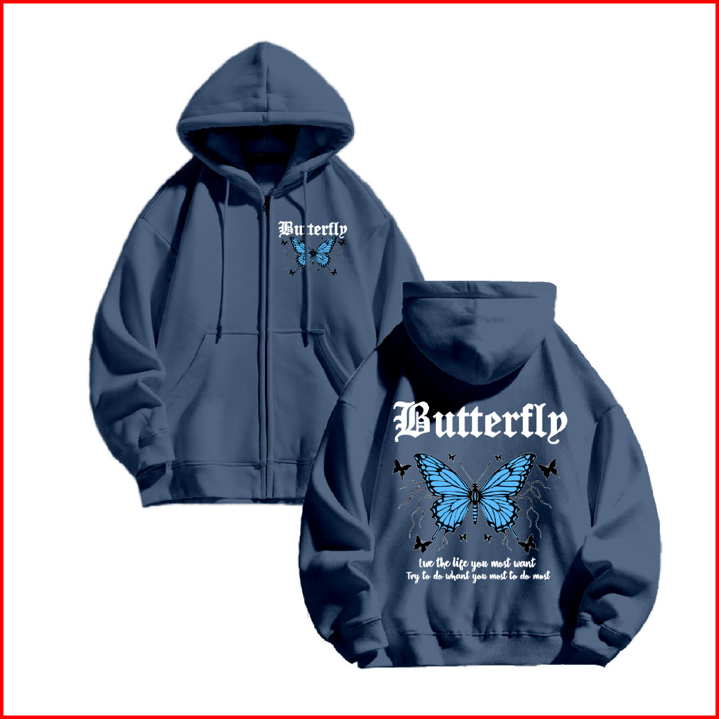 Fenjack Hoodie Zipper Life Butterfly Size M-xxl - Pria Wanita