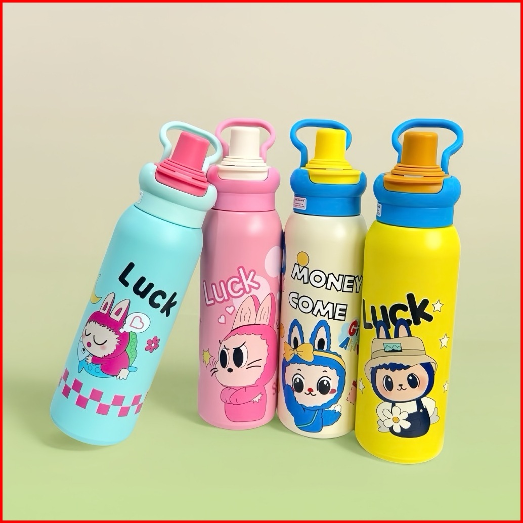 Bb B-306 Tumbler Labubu Stainless Steel Insulated Dengan Handle Dan Sedotan Untuk Minuman Panas Dan Dingin 620ml