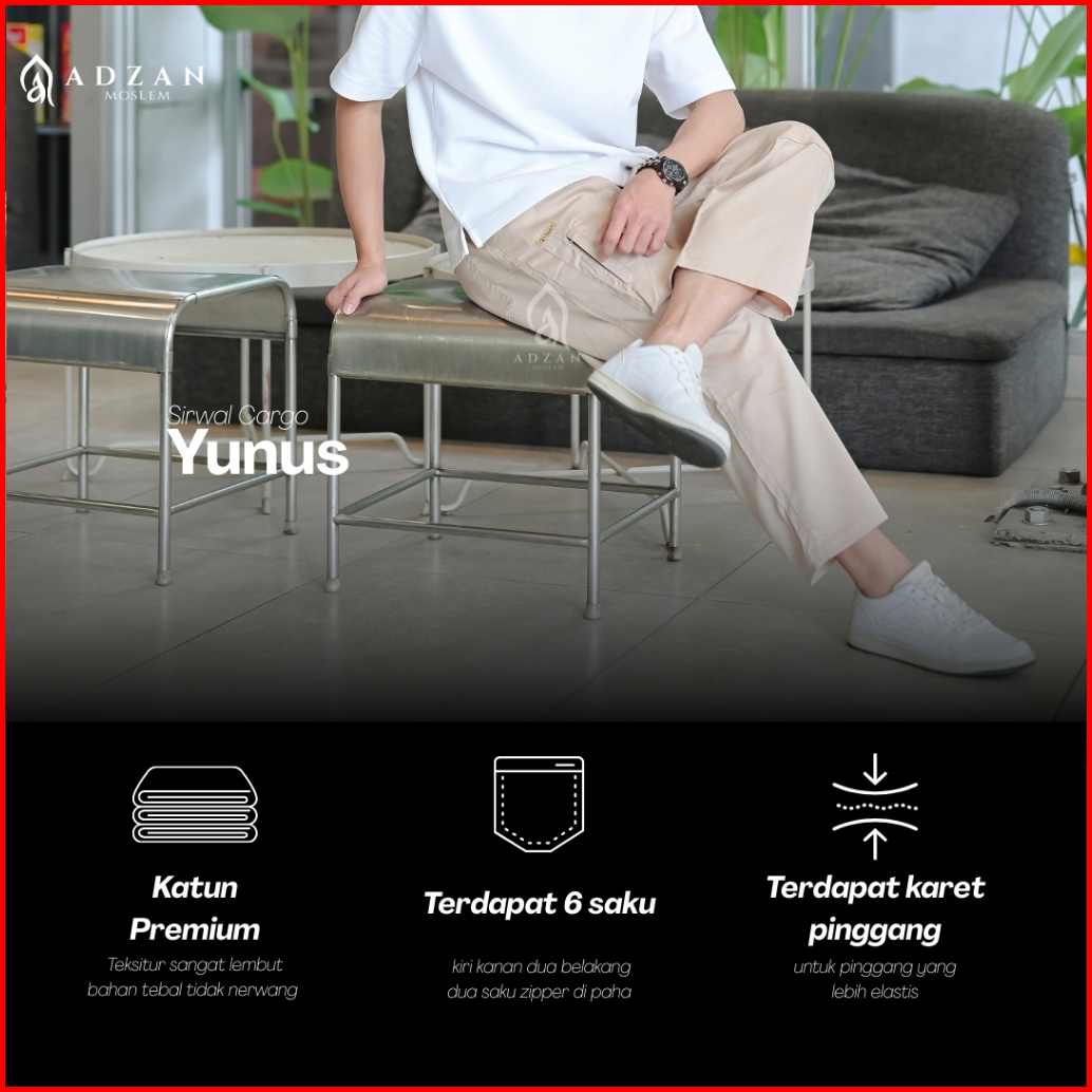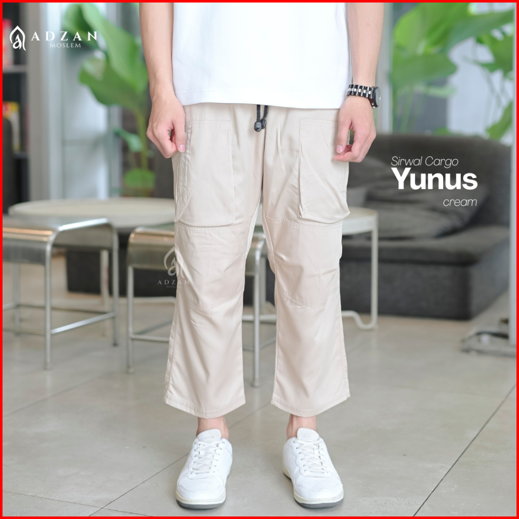 Propaget - Celana Sirwal Cargo Pria Warna Cream