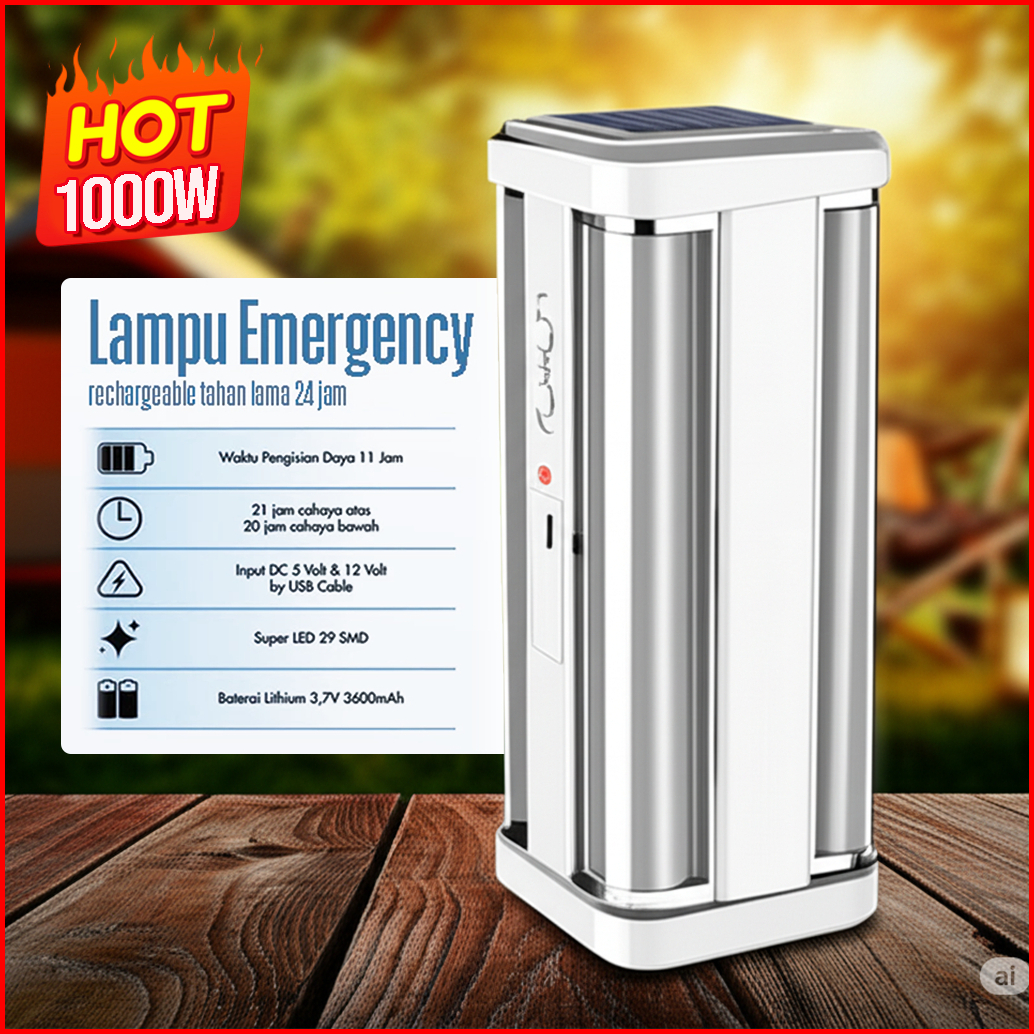 Daya 1000w Lampu Emergency Tahan 24 Jam Led Super Terang Gantung Solar Panel Camping Lamp