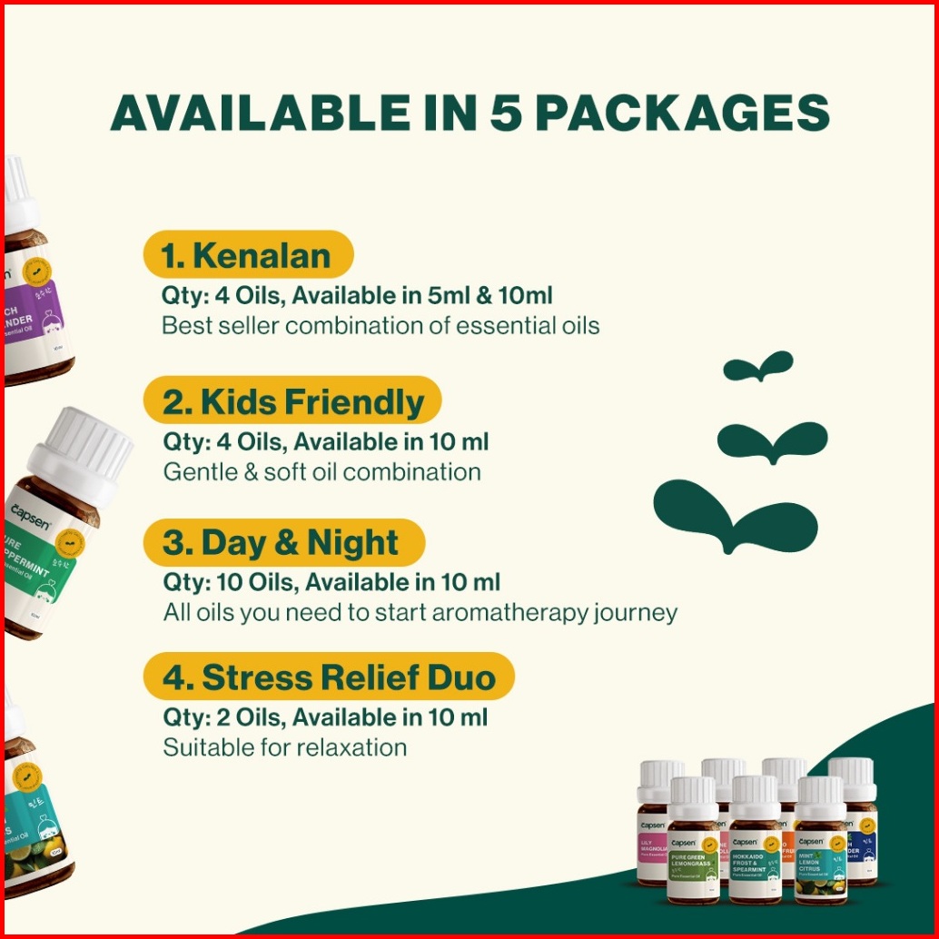 Capsen 10ml Starter Package Oil Only Pure Essential Oil 100 Murni Aromatherapy Therapeutic Grade