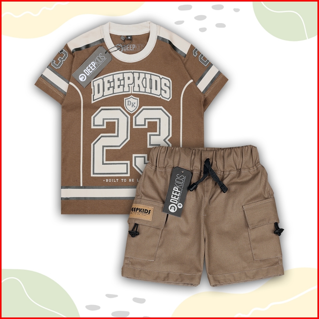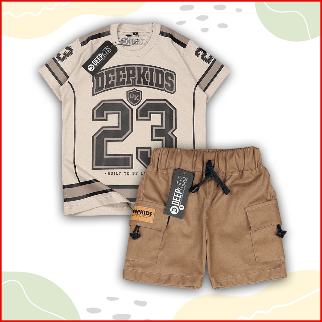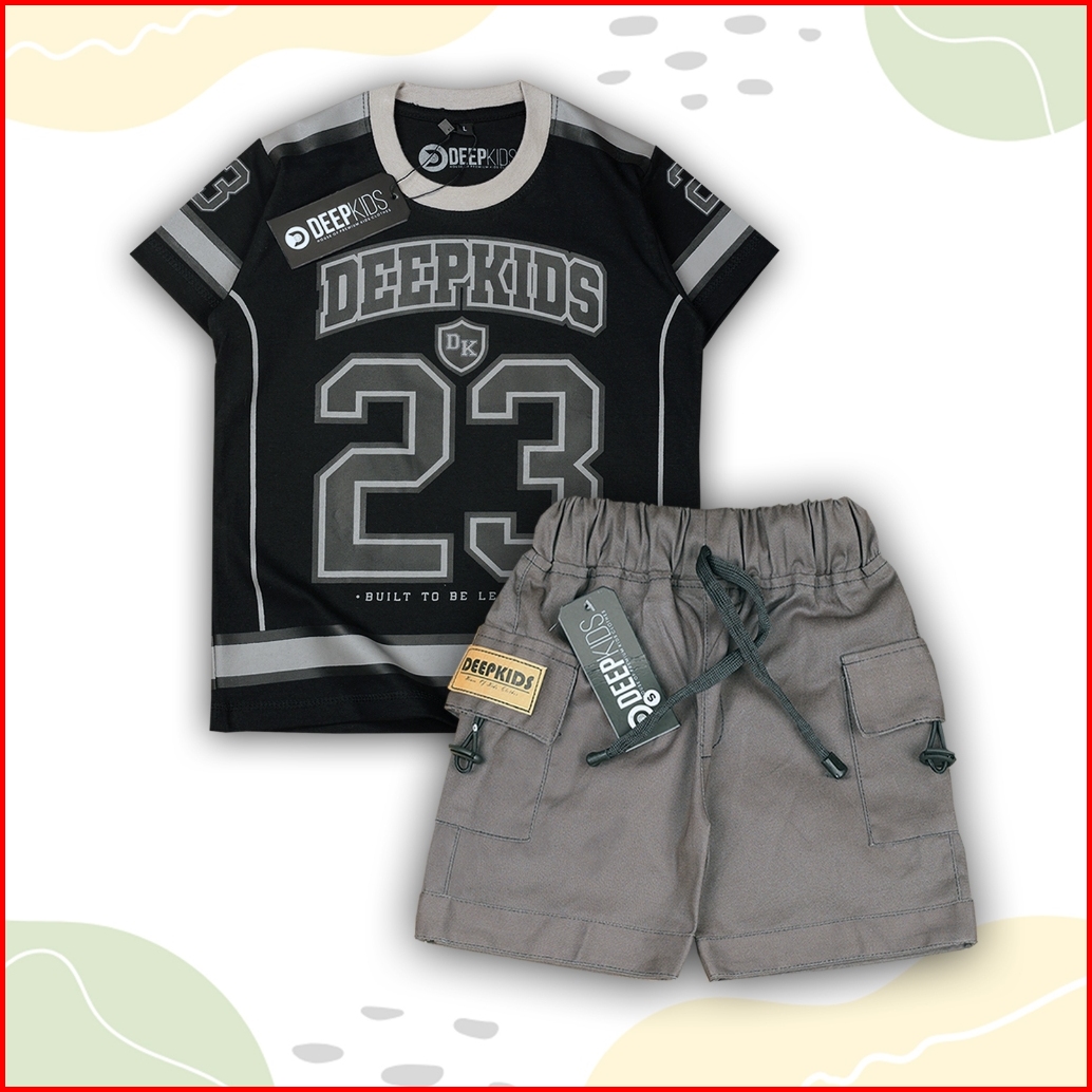 Setelan Anak Laki Laki Kaos Jersey Bahan Cotton Combed Dan Celana Cargo Pdk Premium Usia 1 2 3 4 5 6 7 8 9 10 11 12 Tahu
