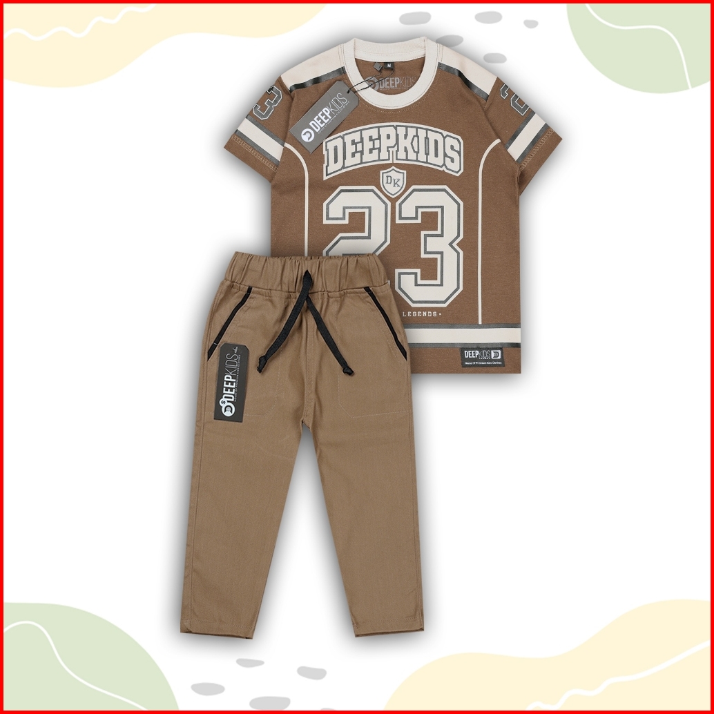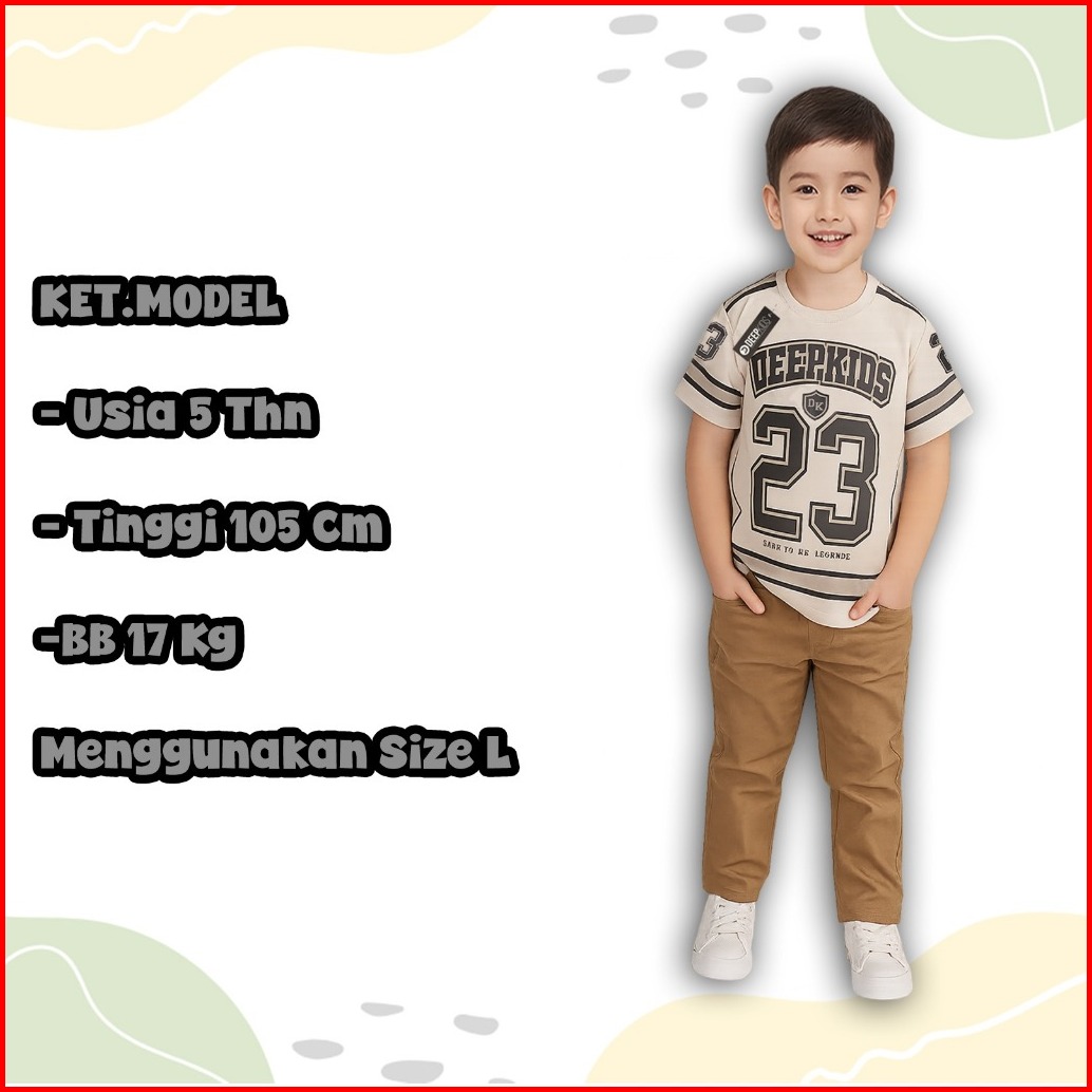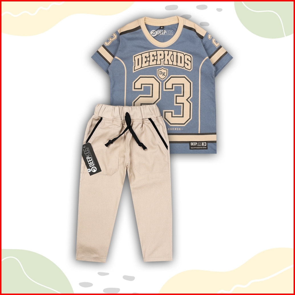 Setelan Anak Laki Laki Kaos Jersey Bahan Cotton Combed Dan Celana Cino Panjang Premium Usia 1 2 3 4 5 6 7 8 9 10 11 12 T