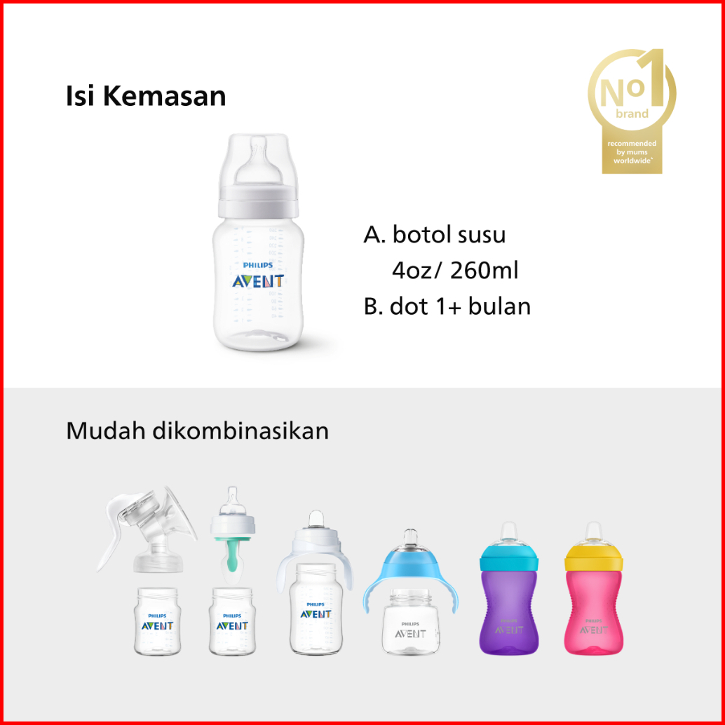 Philips Avent Botol Susu Bayi Anti Kolik Secara Klinis Mengurangi Kolik 260 Ml Single Scy103 01