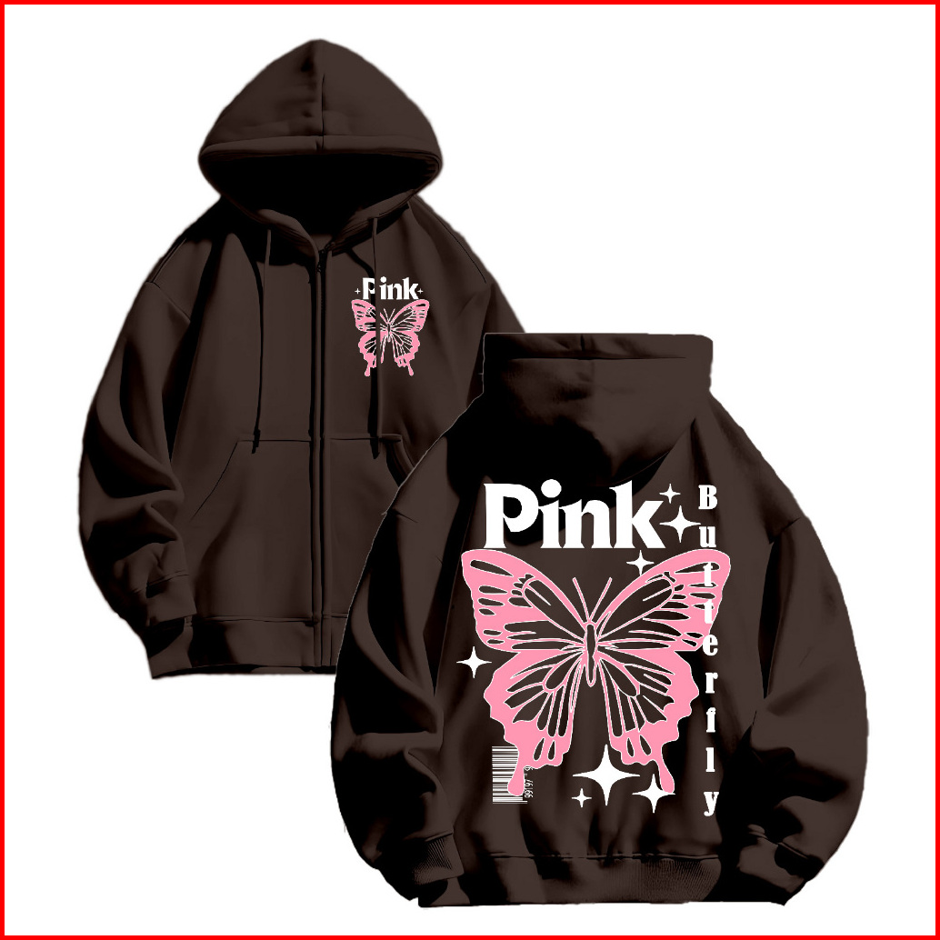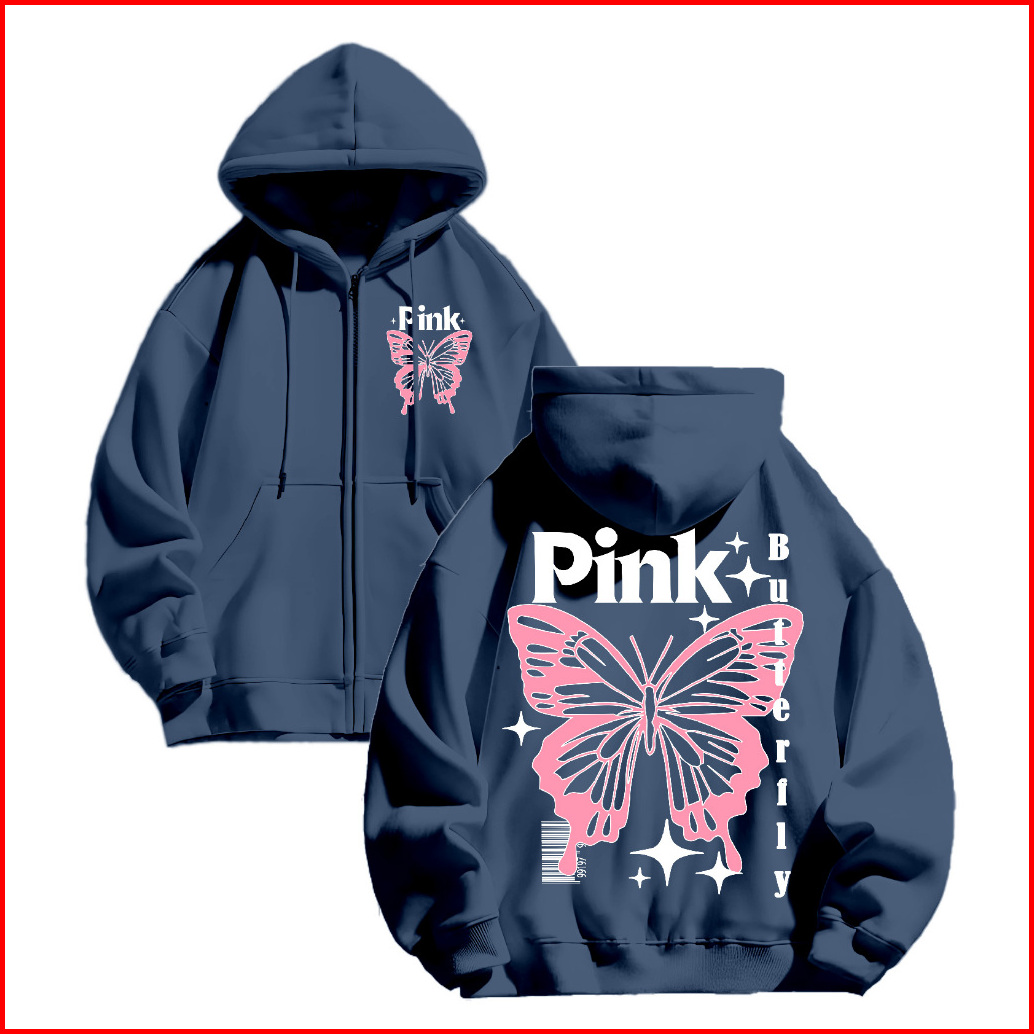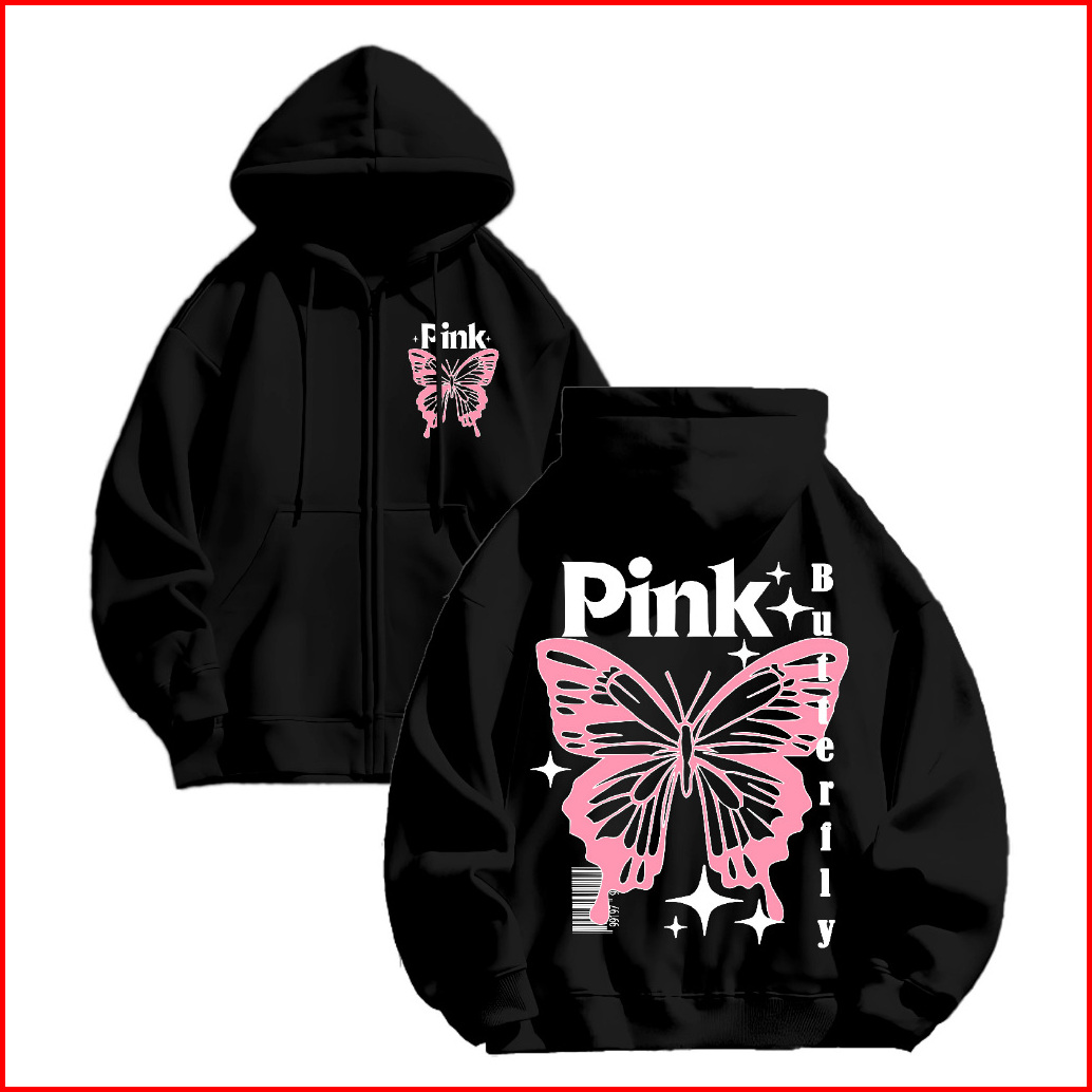 Fenjack Hoodie Zipper Pink Butterfly Size M-xxl - Pria Wanita
