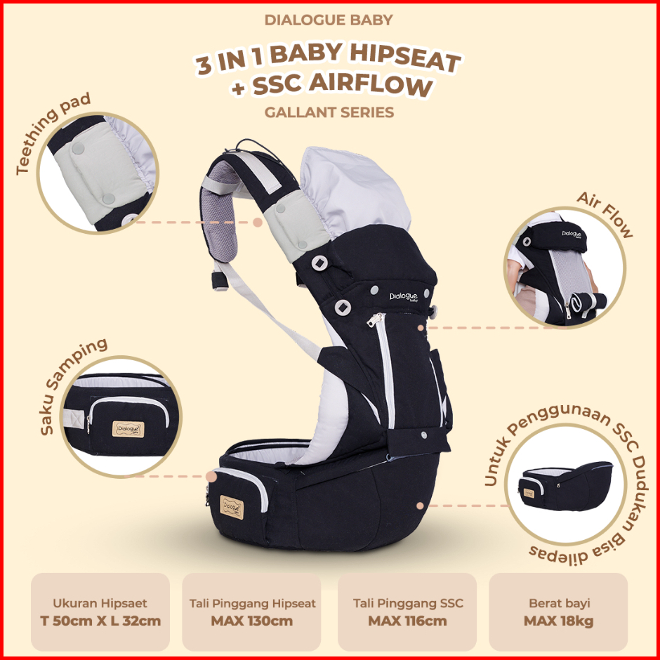 Dialogue Baby 3 In 1 Gendongan Hipseat Ssc M - Shape Airflow Gallant Series 10 Posisi - Dgg1040