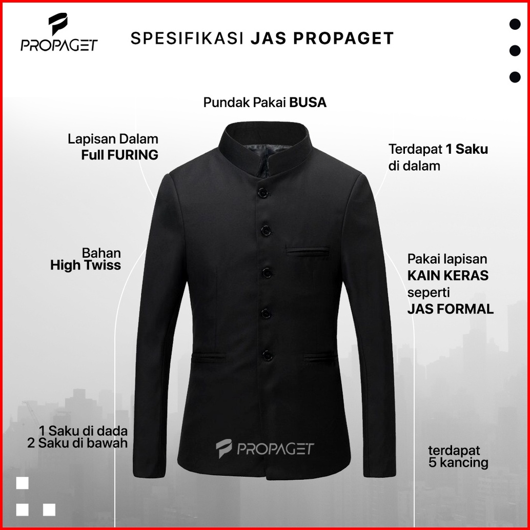 Propaget - Jas Mandarin Slimfit Jas Mandarin Casual Hitam Jas Pria Blazer Pria