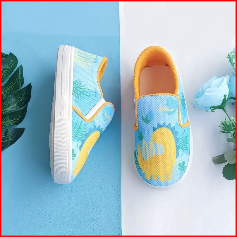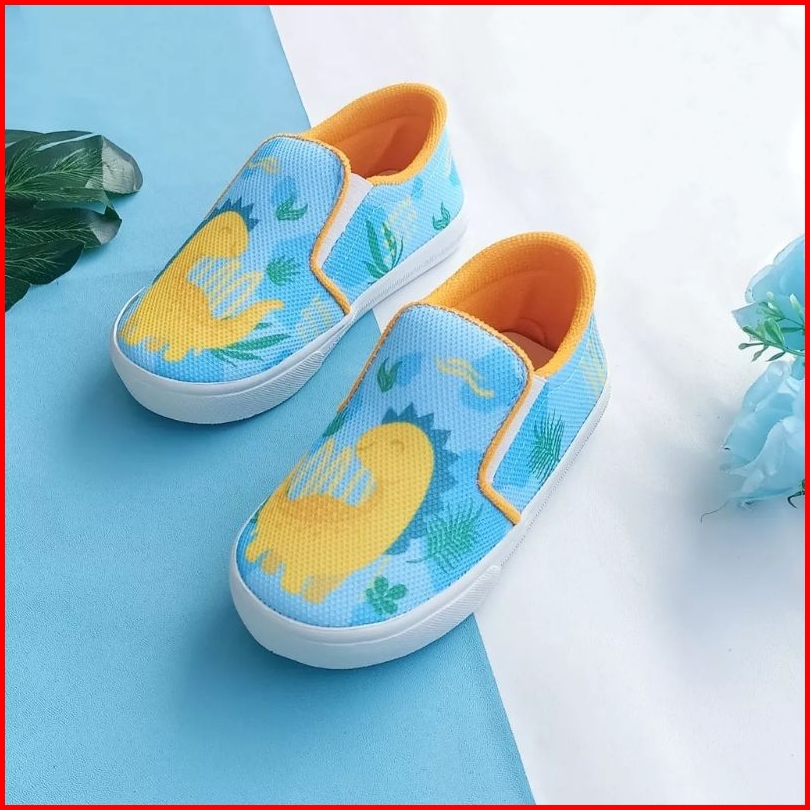 Zonalokidswear Dino Kuning - Sepatu Anak Slip On Anak Perempuan Laki Laki Usia 1 - 9 Tahun