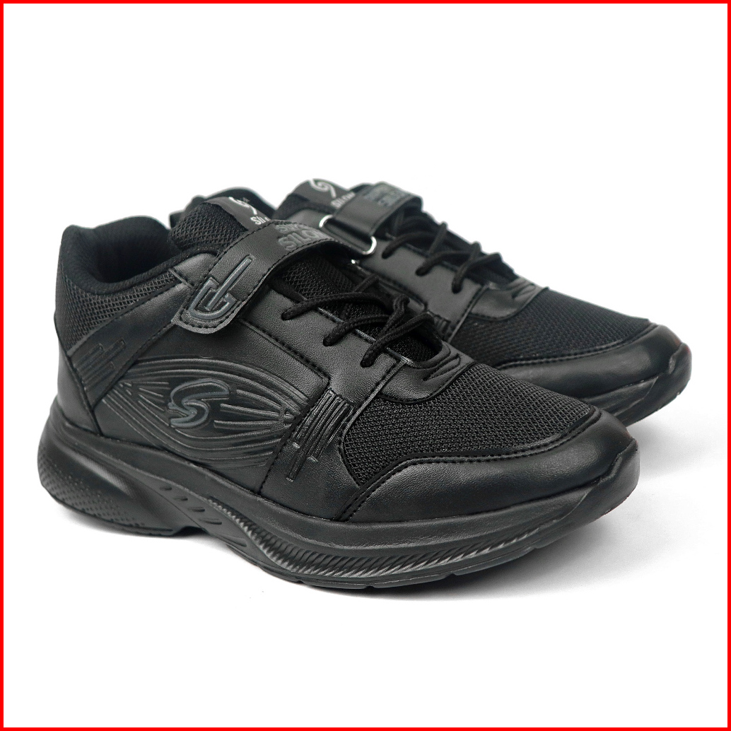 Silom Sepatu Anak Laki - Laki Dan Perempuan Sepatu Sekolah Little Eyes Super Silom Gen-3 Leon White On Black