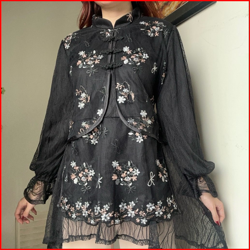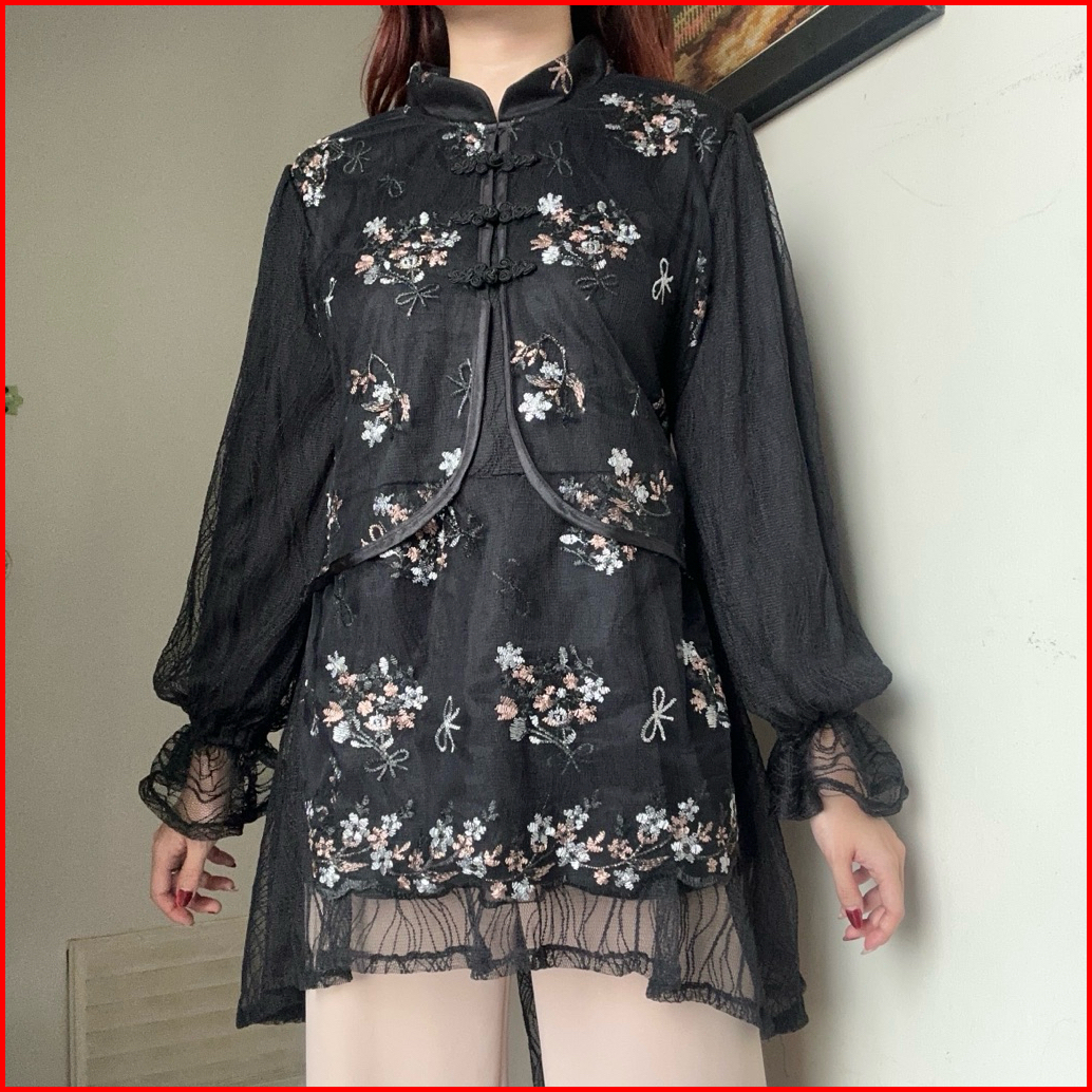 Haruka Bkk Top Tunik Kemeja Blouse Atasan Wanita Viral Tulle Bordir Renda Korean Style By Biel The Label