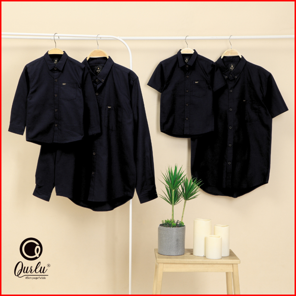 Qurlu - Kemeja Kerah Formal Dewasa Anak Warna Hitam Bisa Couple Ayah Dan Anak