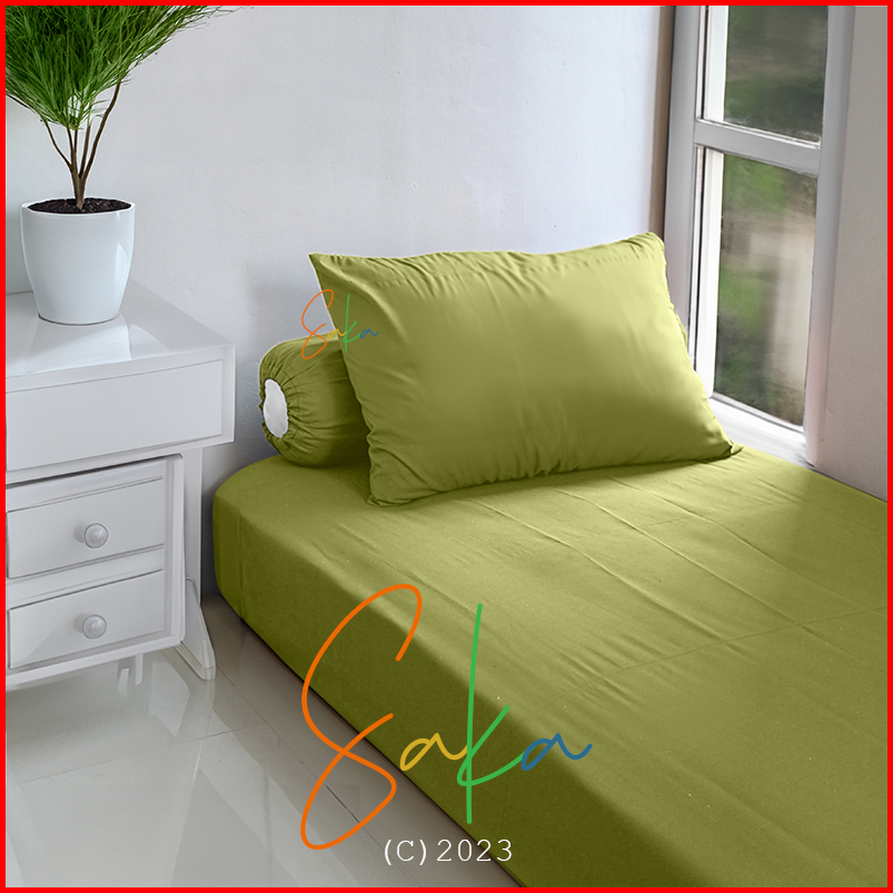Sprei Polos No 3 120x200 No 4 90x200 Cm Set Sarung Bantal Guling Sudut Karet Warna Sage Abu Maroon Navy Coklat Army Ungu