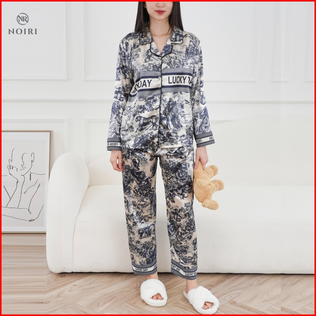 Noiri - Lucky Day Baju Tidur Lengan Panjang Setelan One Set Wanita Dewasa Lengan Pendek Celana Pendek Bahan Satin Premiu