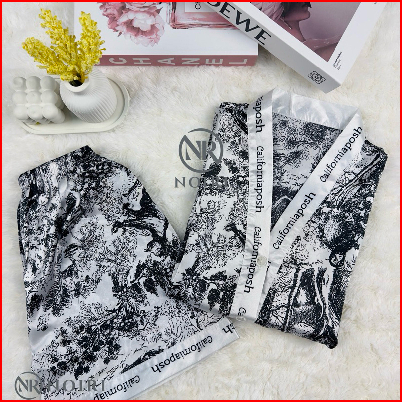 Noiri - 2 Marble Series Piyama Wanita Set Satin Celana Pendek Lengan Pendek Bahan Satin Premium Baju Tidur Setelan