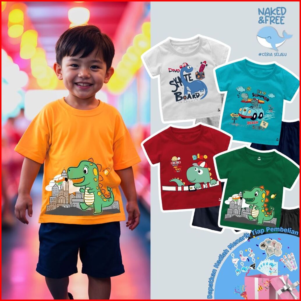 Naked Free Setelan Kaos Pendek Bayi Anak Laki-laki Dinosaurus Series Summer Dino Bahan Katun Din-1