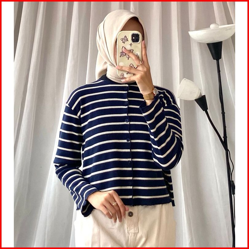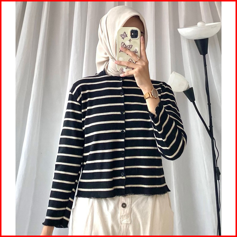 Maudy Stripes Top Cardy - Atasan Wanita Korean Look
