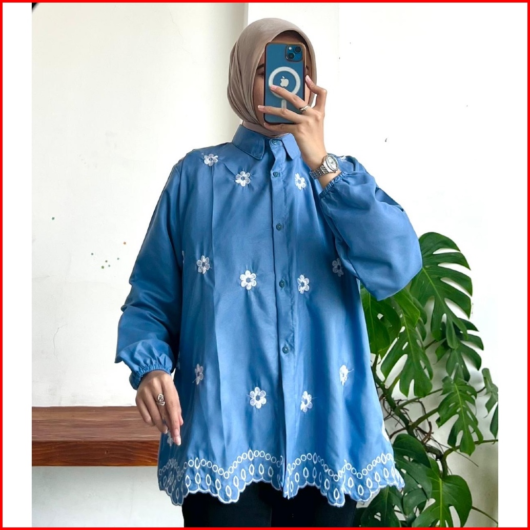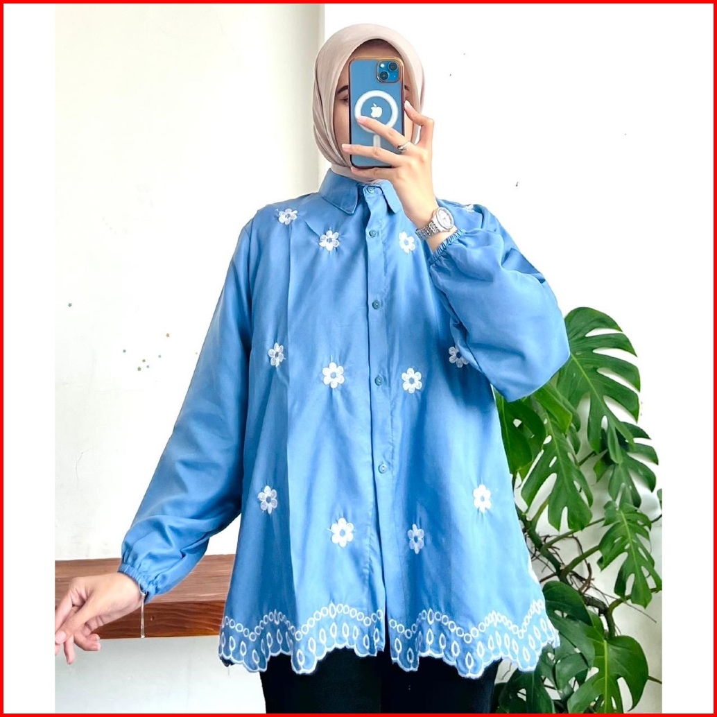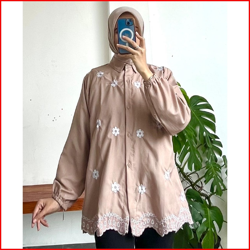 Alesha Blouse Bordir By Shafitri - Atasan Wanita Kemeja Bordir Bunga