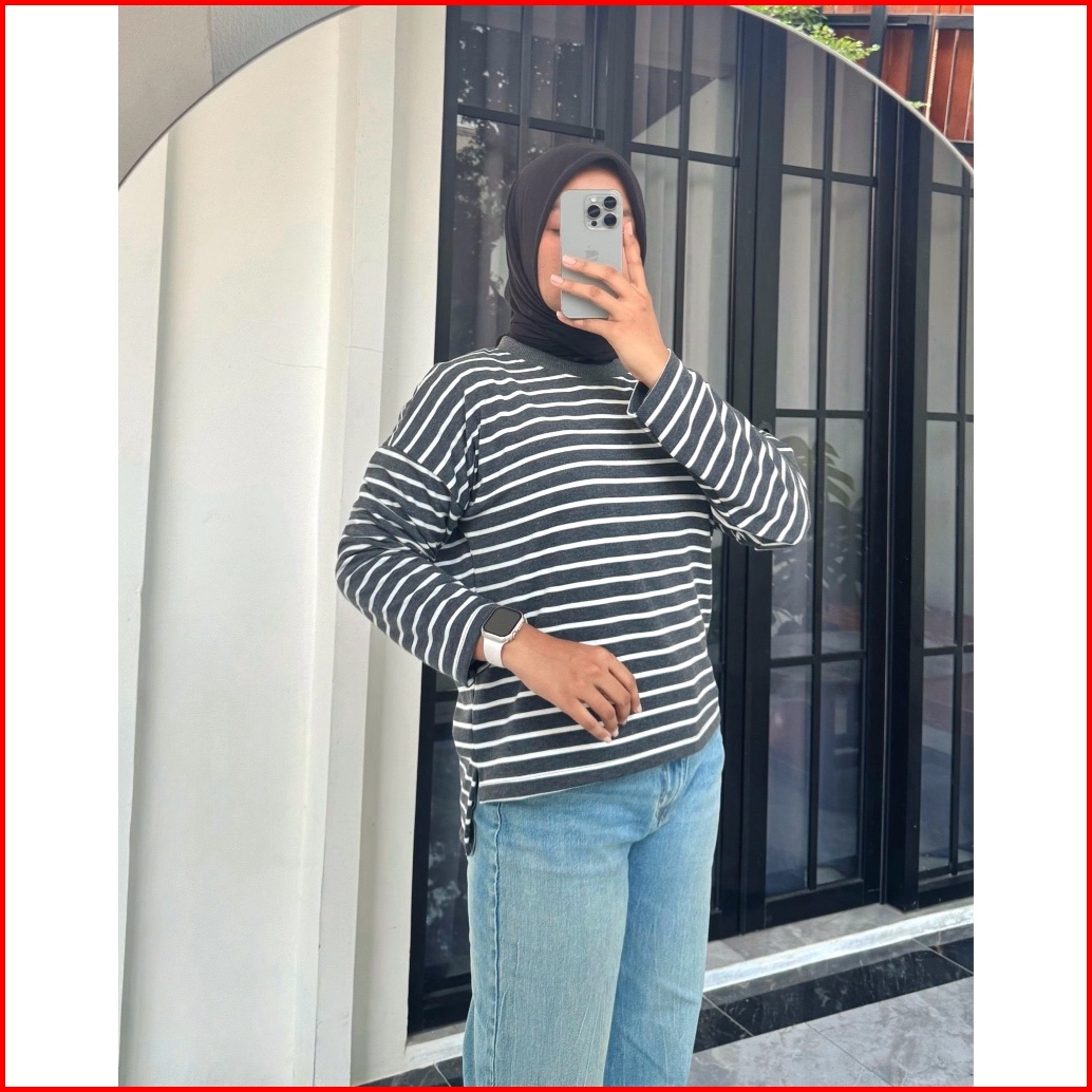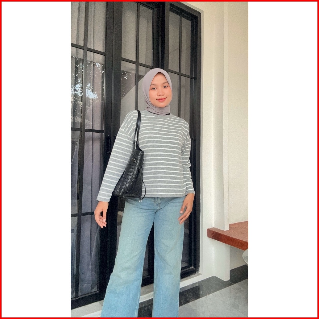 Aura Shirt Kaos Oversize By Shafitri - Atasan Wanita Motif Garis Cotton Terry