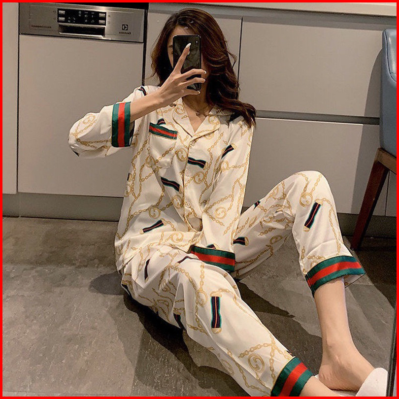 Ready Stock Baju Tidur Piyama Set Bahan Satin Motif Lengan Panjang Celana Panjang Piyama Import Super High Quality Baju