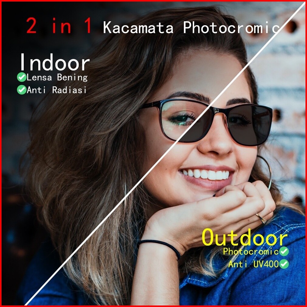 Viendo Kacamata Photocromic Minus Wanita Cat Eye Bluecromic Anti Blueray Kaca Mata Optik Silinder