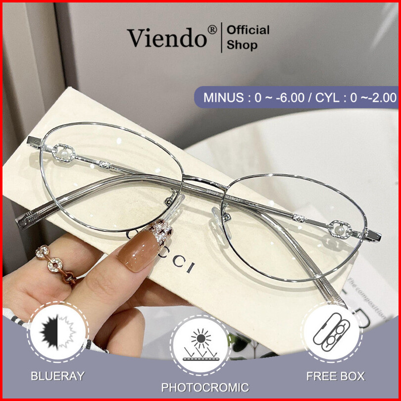 Viendo Kacamata Minus Photocromic Anti Radiasi Blueray Wanita Cat Eye Bluecromic Kaca Mata Optik