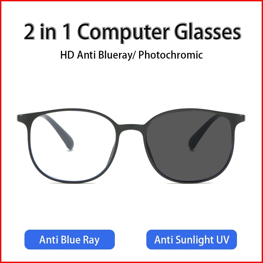 Frame Kacamata Photocromic Anti Radiasi Minus Wanita Pria Elliptical Tr90 Potocromic Anti Sinar Matahari Uv400 Fotocromi
