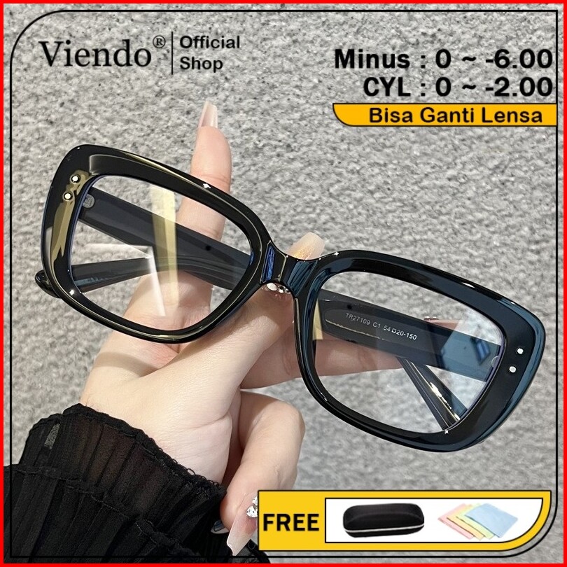 Viendo Kacamata Photocromic Anti Blueray Minus Wanita Pria Cat Eye Bluecromic Kaca Mata Optik 27109