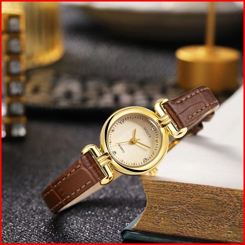 Holek 6123 Jam Tangan Wanita Anti Air Santai Elegan Retro Tali Kulit Original Jam Tangan Cewek Kecil