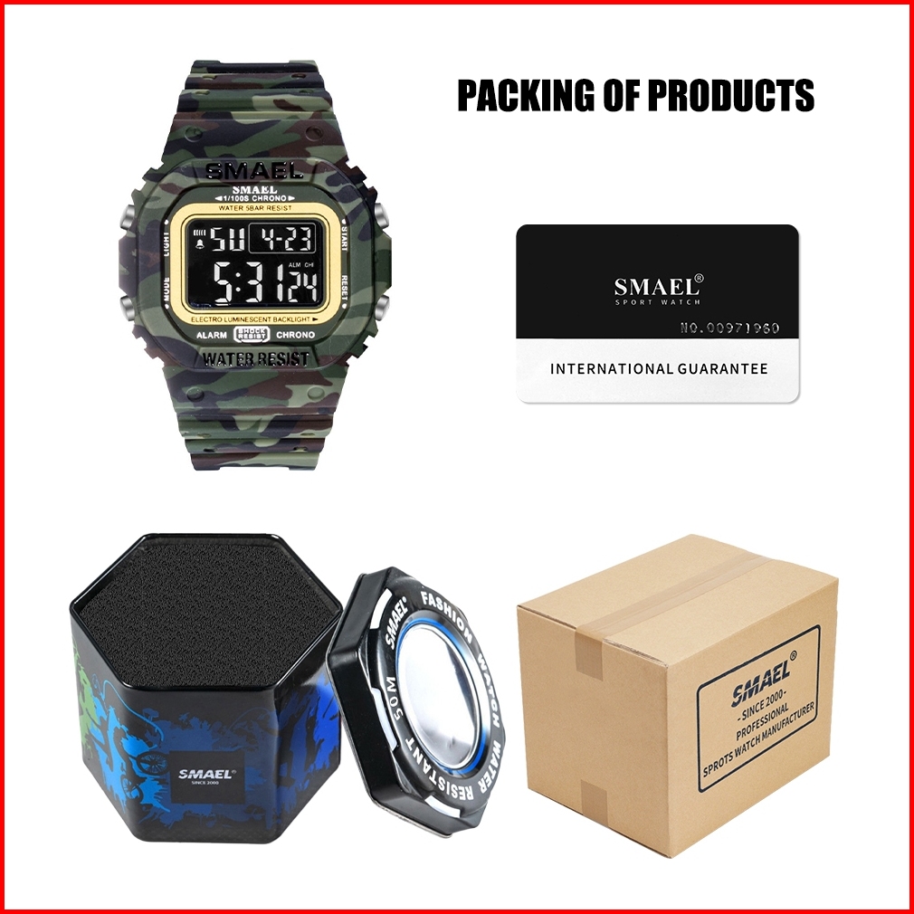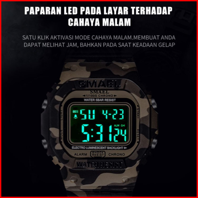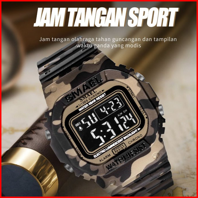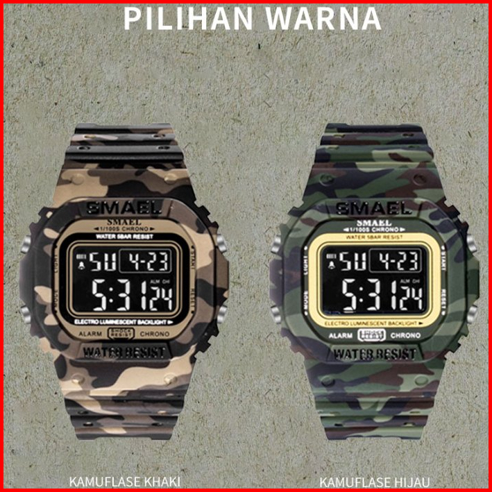 Smael 1801 Kamuflase Original Jam Tangan Sport Digital Pria Wanita Multifungsi Tahan Air Bercahaya