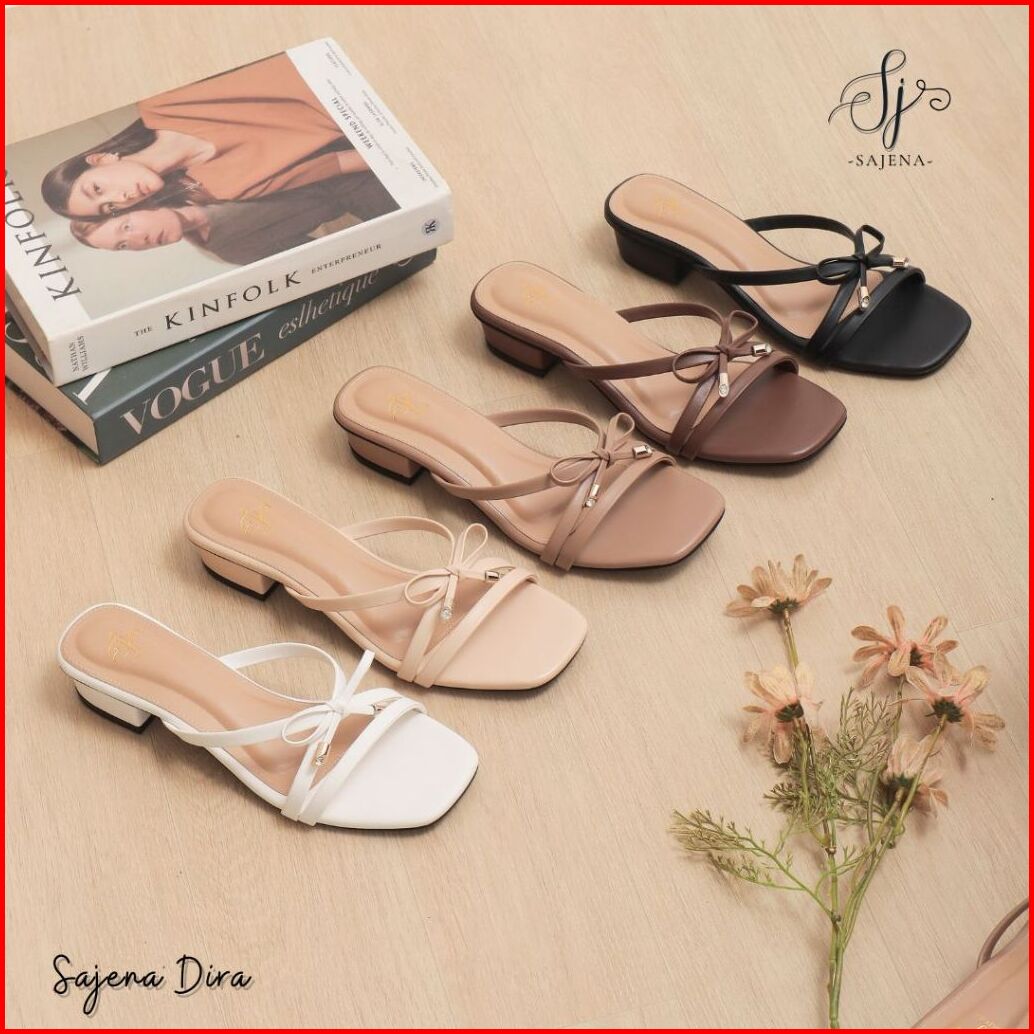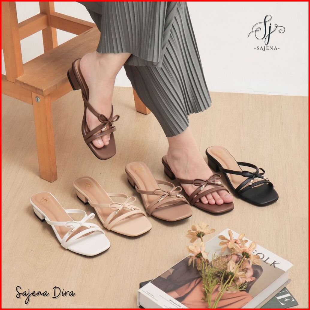 Sajena Dira Bow Sandal Heels Hak Pendek 3 Cm Casual Formal Daily Wanita