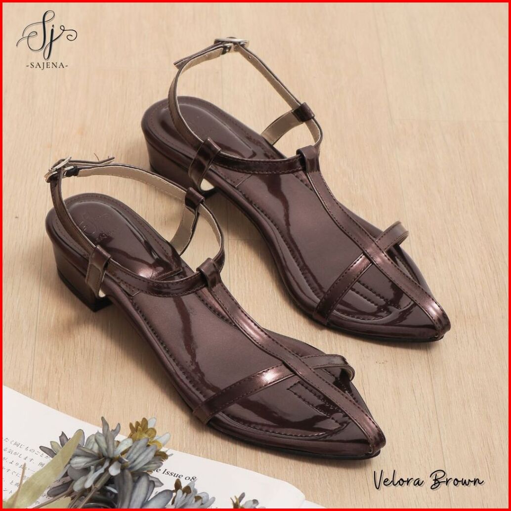 Sajena Velora Sandal Heels Formal Casual Glossy Wanita Hak 3cm