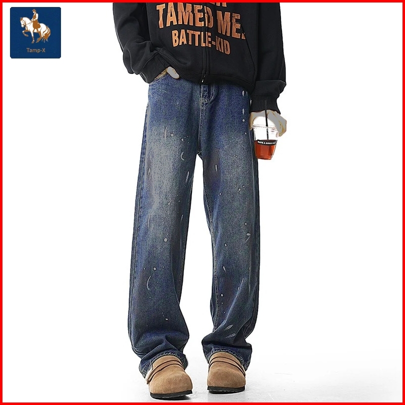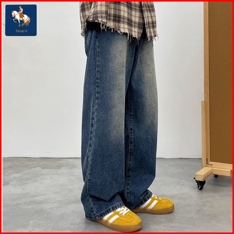 Tamp-x Oversize Celana Jeans Pria Baggy Skena Denim Jumbo Loose Jeans Korean Style Kulot Straight Retro Biru