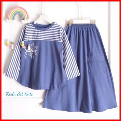 Kreta Set Kids Setelan Rok Cargo Viral Anak Perempuan Setelan Rok Baju Muslim Anak
