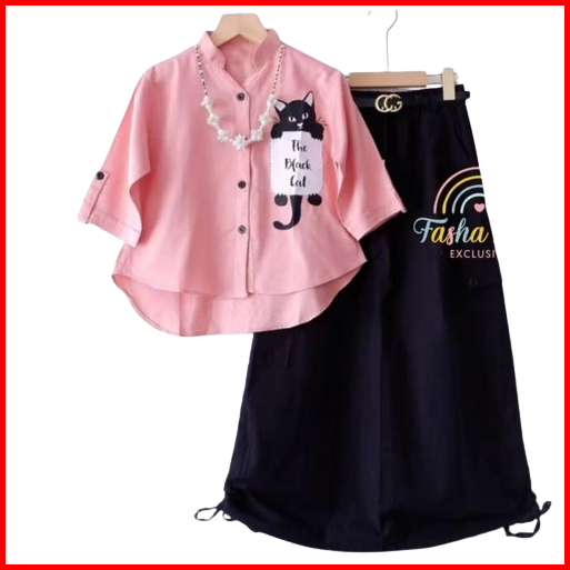 Setelan Cargo Catty Set Kids Baju Anak Kekinian Fashion Anak Perempuan
