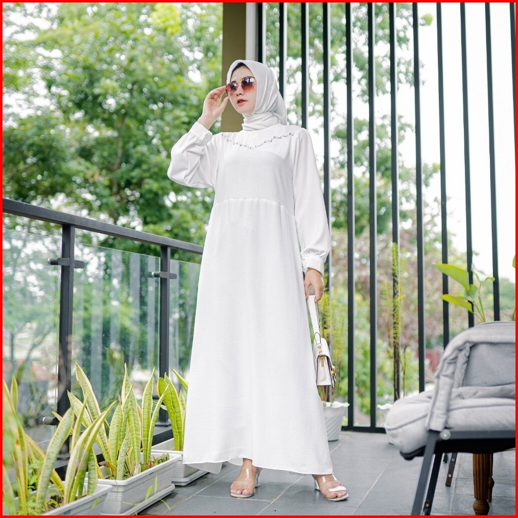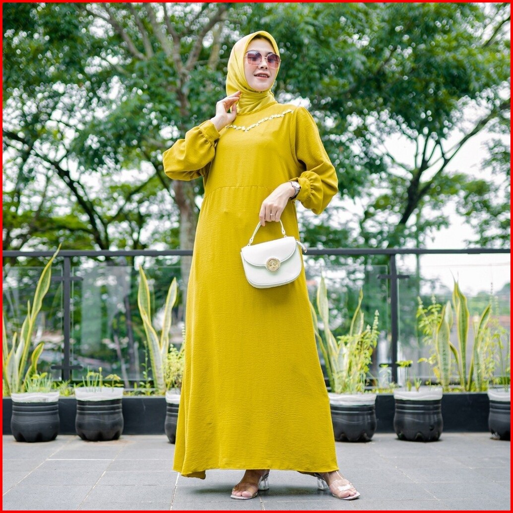 Ademinco Muthia Gamis Crinkle Airflow Pakaian Muslim Wanita Busui Manik