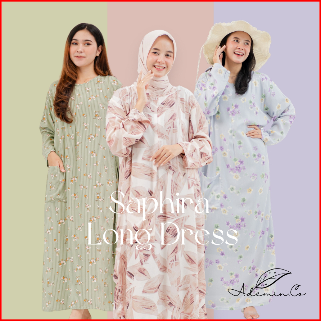 Ademinco Saphira Long Dress Rayon Reactive Daster Panjang Semata Kaki Hijab Friendly
