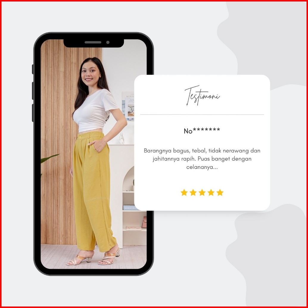 Ademinco Marsha Haighwaist Crinkle Airflow Cullotes Celana Kulot Wanita Kringkel